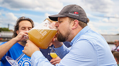 Spree-Rundfahrt mit Hauptstadtpanorama und zwei Collab-Bieren: „Flipper“ und „JAWS“ von BRLO und Störtebeker. Organisator Christoph erzählt von den Festival-Highlights, während die Braumeister Micha (BRLO) und Jens von Störtebeker Einblicke in die Idee und Zusammenarbeit geben.