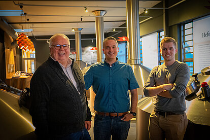 Dennis begrüßt Störtebeker Inhaber & Geschäftsführer Jürgen Nordmann zusammen mit seinem Sohn Jan Malte Nordmann. Gemeinsam werfen wir einen Blick in die Zukunft: "Störtebeker 2030".
