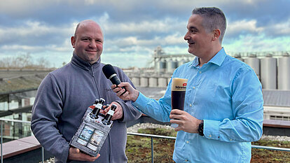 Dennis begrüßt den amtierenden Deutschen Meister der Hobbybrauer Florian Nahrwold zur Premieren-Verkostung seines Siegesbieres. Mit seinem Belgian Blonde Ale konnte Florian im letzten September die Jury restlos überzeugen und sich damit zum Deutschen Meister krönen.