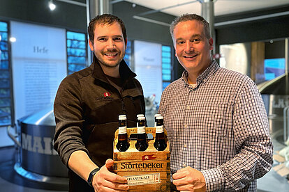 Dennis hat "den König der Hobbybrauer" zu Gast: Den amtierenden Deutschen Meister der Hobbybrauer Jan Mordhorst. Jan hat Anfang Dezember u.a. zusammen mit unseren Braumeistern Christoph und Jens sein Gewinner-Rezept bei uns in Stralsund auf der Störtebeker Brauanlage Einbrauen dürfen.