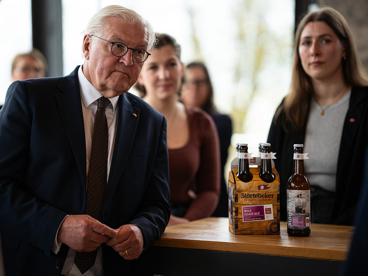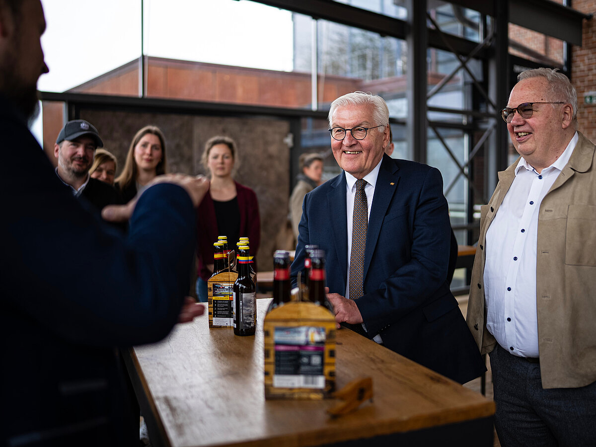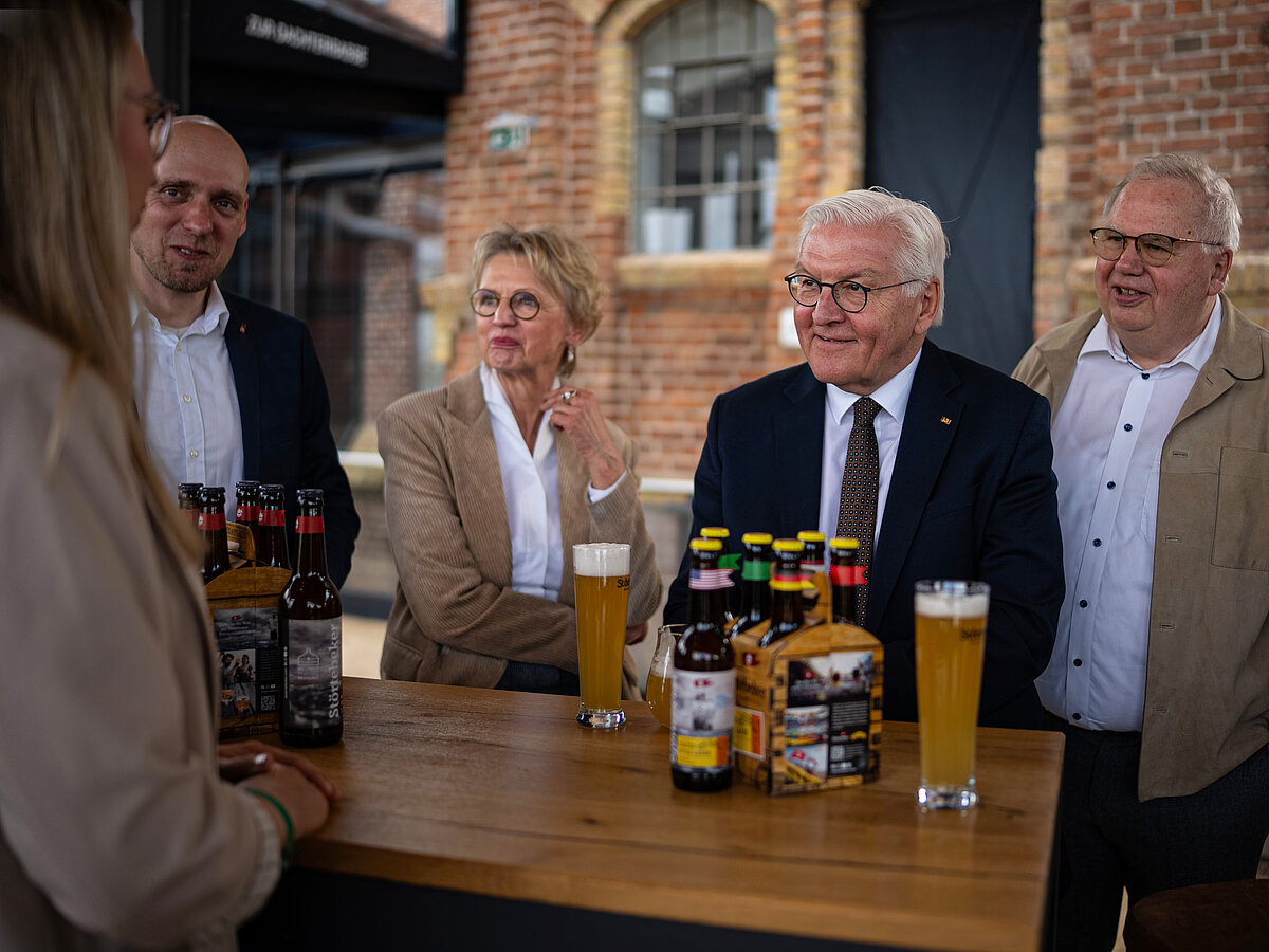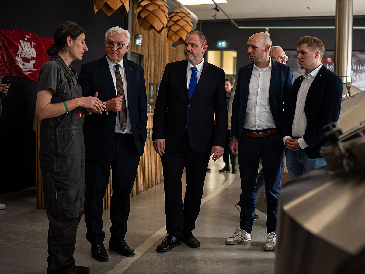 Der Besuch der Störtebeker Braumanufaktur war Teil der „Ortszeit Deutschland“, bei der der Bundespräsident seinen Amtssitz temporär nach Stralsund verlegt hat, um mit Menschen vor Ort ins Gespräch zu kommen und regionale Stärken sichtbar zu machen.