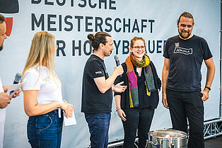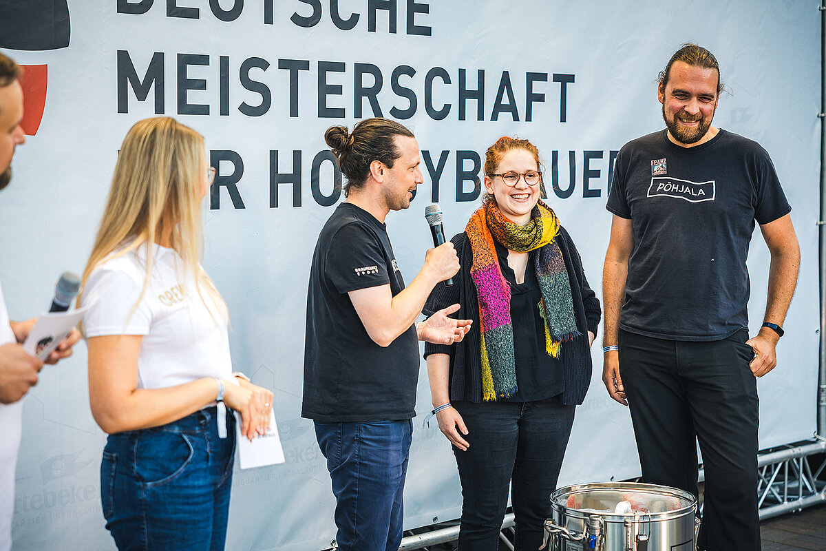 Parallel zur Deutschen Meisterschaft fand das große Festival der Kreativbiere statt: Mehr als 900 Besucher nutzten die Gelegenheit, die 100 eingereichten Biere zu verkosten und sich mit den Brauern auszutauschen. Von Fassgereiftem über einen Federweißer-Bier-Hybrid bis hin zu gewagten Kombinationen aus Früchten und Gewürzen reichte das Spektrum. Auf dem Treppchen gab es ebenfalls ein Wiedersehen: Die Braugruppe „Der Hopfengärtner“ aus Hannover wiederholte ihren Triumph aus dem Vorjahr. Gregor Gärtner und Luise Redetzky gewannen mit ihrem „Hop’n’Melba“, einer Hommage an den Dessertklassiker Pfirsich Melba.
