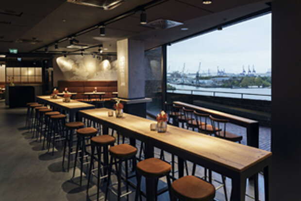 Das Deck & Deli mit Zugang zur Plaza ist der ideale Ort für den Ausklang des Konzertbesuchs oder das schönste Feierabendbier der Hamburger.